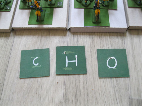 У каждого игрока три карточки приказов,одна из которых выкладывается из колоды позади батальона и вскрываются во время боя.