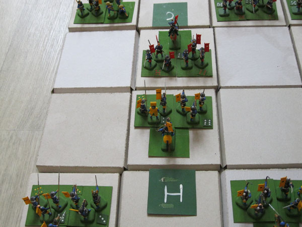 Можно так же развернуть ПкП в "дивизионную" игру но,для этого понадобится больше наборов и,большие по площади клетки (если используутся фигурки).
