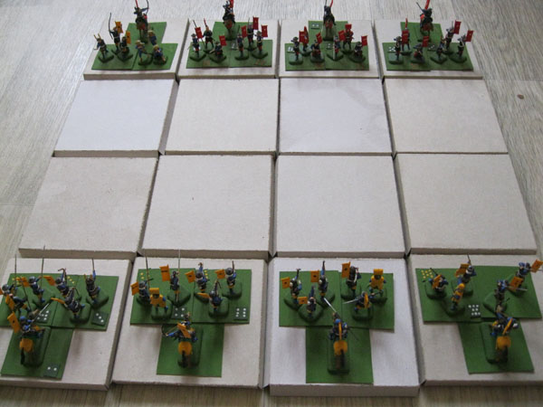 Игра может проходить на поле площадью 50 х 50 см.(по желанию) с квадратными полями 10 х 10 см.