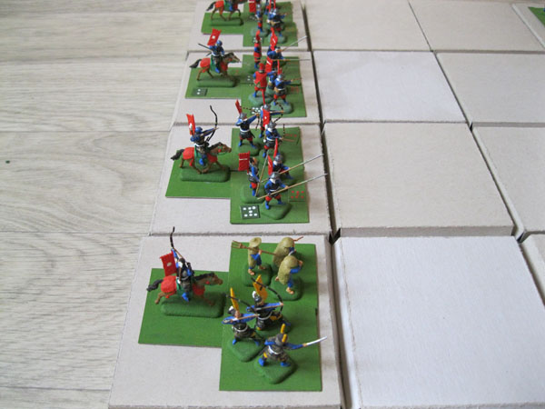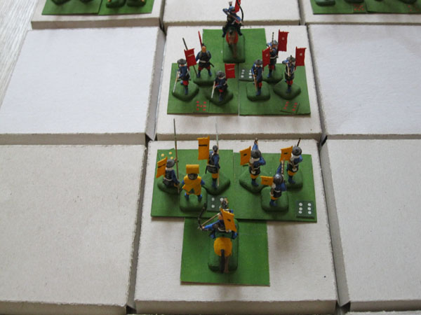 У каждого игрока три карточки приказов,одна из которых выкладывается из колоды позади батальона и вскрываются во время боя.