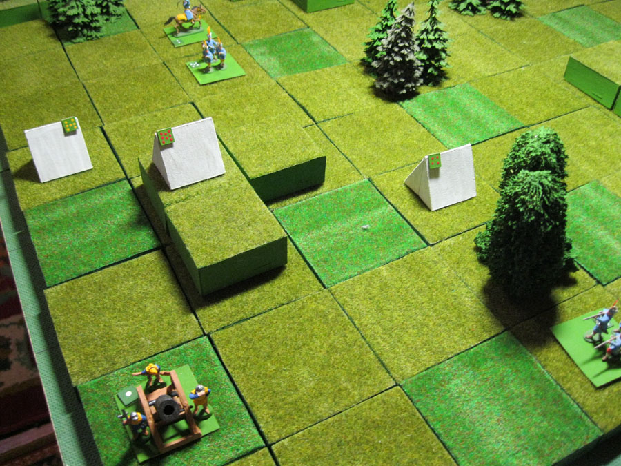 Для того,чтобы уменьшить уязвимость отрядов вынужденных становиться на отдых предусмотрены обозы которые,по желанию игрока разворачиваются в полевой стан в каком -либо нужном месте.Полевой стан позволяет восст .БС всем отрядам(одному за один ход) стоящим возле него на всех клетках (прямо и наискосок) то есть,стан расположен как бы в центре 9-ти клеточного квадрата (аналог-АОТ-ромашка).Перевод обоза в стан считается ходом.