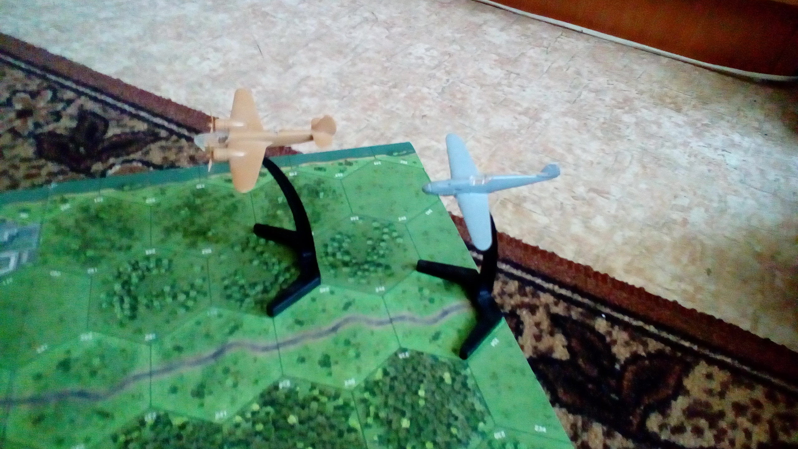 ) Может завтра - послезавтра отыграем бой с 3 истребителями. Извиняюсь за качество фото и самолетов. Модели попали мне от младшего брата, он ими интересовался, потом втянулся и я. Сейчас у нас модели отдельно лежат, я свои на полочку ставлю. Модели он хранил просто в коробке, как результат - нет винтов, шасси, стабилизаторов (он их собрать не мог, и просто выкидывал). Бленхейм - мой, а Мессершмитт - брата.