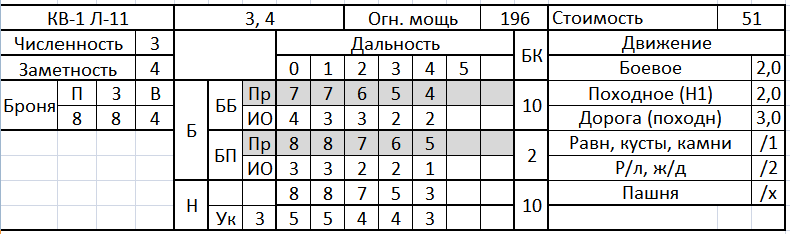 Вот например с тем же примером КВ: 8-8-7-5-3 - я так понимаю , что это ИО по небронированным целям? Не важно каким? грузовик, пехота?